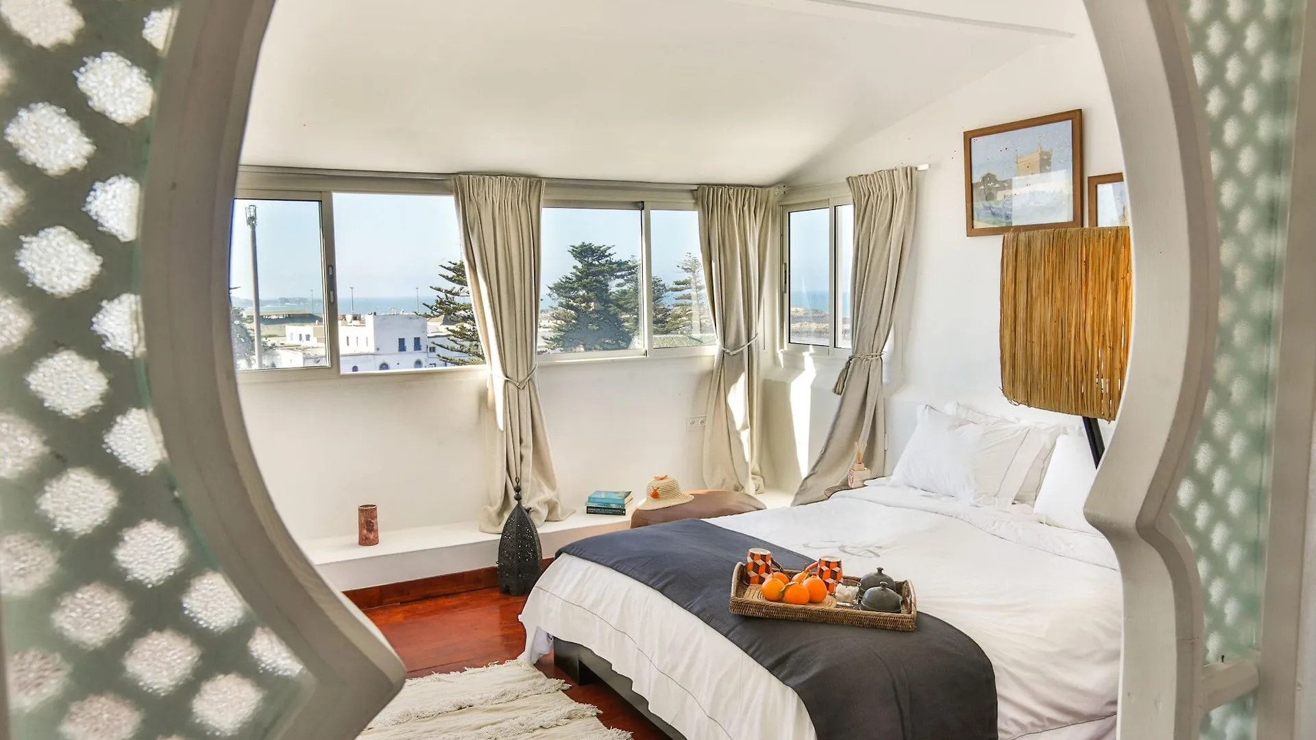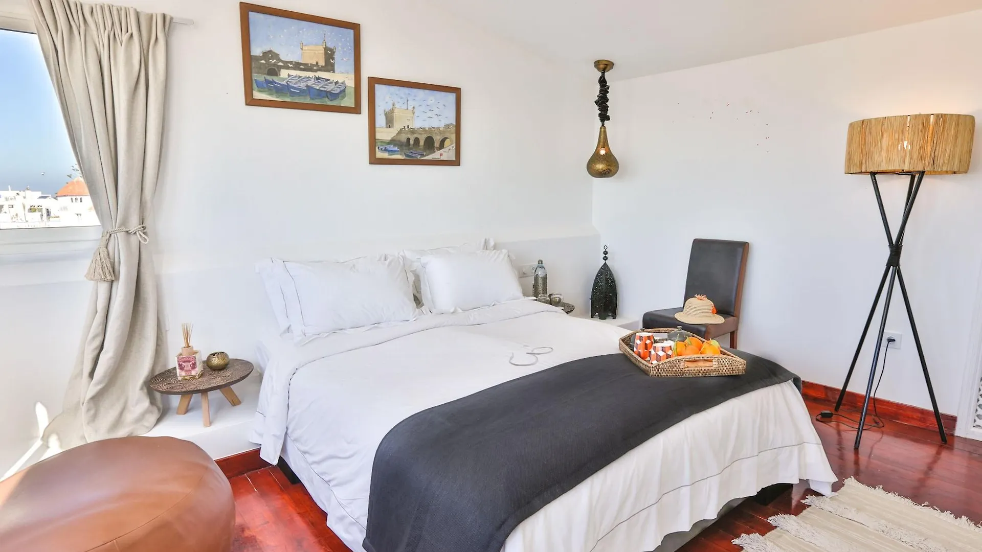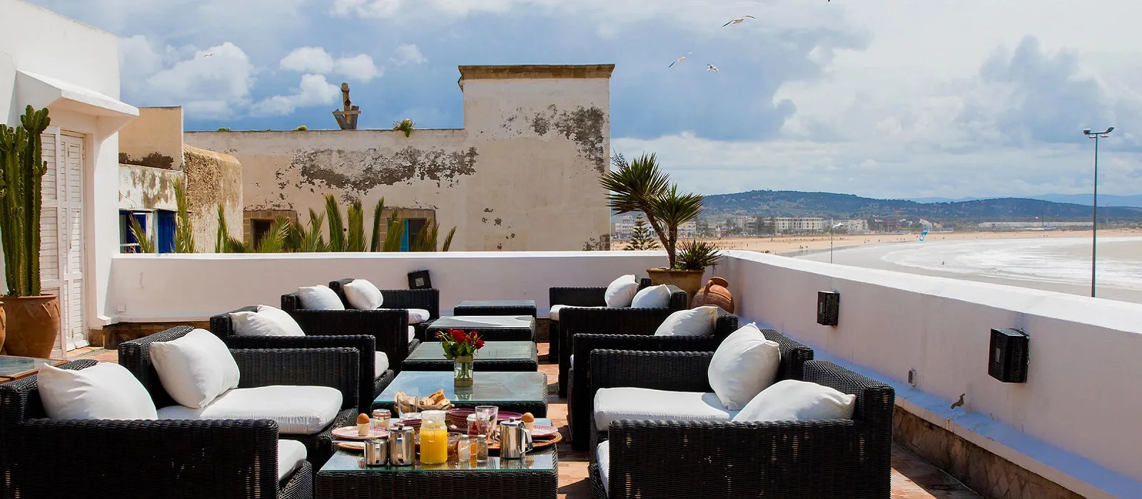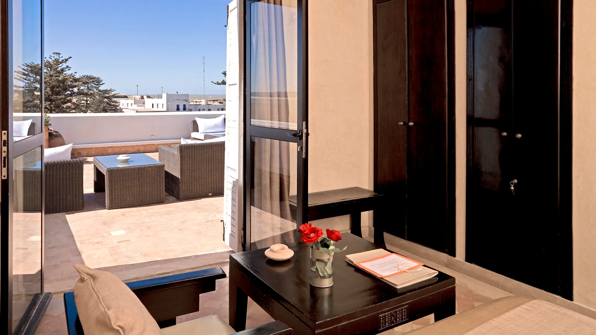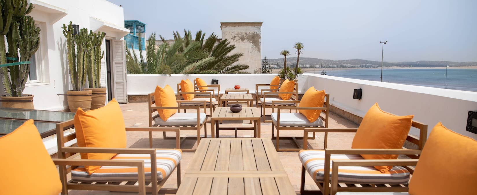 The Assala Standard Room fuses contemporary architecture with natural and warm tones. Located on the 1st floor at the patio level, the Assala overlooks the twisting alleyways of the ancient Medina. The refined Madada Superior room which opens onto the ramparts of Essaouira and its old fishing port is located on the 1st floor, this comfortable suite echoes the natural colours of the local terrain. Blending tradition and modernity, the Sabra bedroom is decorated in shades of red, recalling the vegetable dyed silk fabric hand woven in the local souks. Located on the patio level, the Sabra offers a view of the ramparts of Essaouira and its many winding alleyways. Named for the Persian ‘Padichah’, meaning sovereign, the Pacha room will not disappoint. Located on the ground floor on a large terrace facing the ocean, with privacy guaranteed thanks to the tinted windows Pacha exudes a refined and comfortable atmosphere with its fabulous views over the Atlantic ocean. Taking its name from the Moroccan princess, the Arab-Andalusian architecture of the Salma Ocean View Room represents the diversity of Morocco. Located on a large terrace, accessed from the side, the Salma is all about gentle comfort. A large window offers a sublime view over the bay of Essaouira. The Mogador Ocean View Suite sits on the edge of the ramparts. The bedroom opens onto a private balcony overlooking the beaches, fortified walls, and the port of Essaouira. Decorated in a colonial style, Mogador enjoys a spacious layout. With a ceiling high of more than 6 metres, the sense of space is phenomenal. The Ramparts Loft Side Suite is a large 2 bedroom, 2 bathroom suite is perfect for 2 to 4 guests. An elegant and modern loft style apartment with an incredible sense of space thanks to its ceiling height of over 6 metres. It comprises 1 twin or double bedroom, and a double bed on the mezzanine which overlooks the living room and its fireplace. The Cherifa has a large private terrace overlooking the harbour and historic ramparts of Essaouira. Hidden away on the terrace, guests can relax on the large sofa, enjoying the majestic view and cool see breeze. A fireplace and cozy living room provide comfort year round - Cherifa offers the perfect mix of indoors and outdoor living for your stay in Essaouira. The latest addition to the Madada collection, the Cabana room floats high above the Medina and the Bay of Essaouira. Located on the second terrace, the Cabana features an exceptional 180 degree view of the Atlantic ocean. This luxurious white wooden cabin is the ultimate romantic hideout where guests can relax and enjoy the beautiful views of Essaouira from the terrace.
