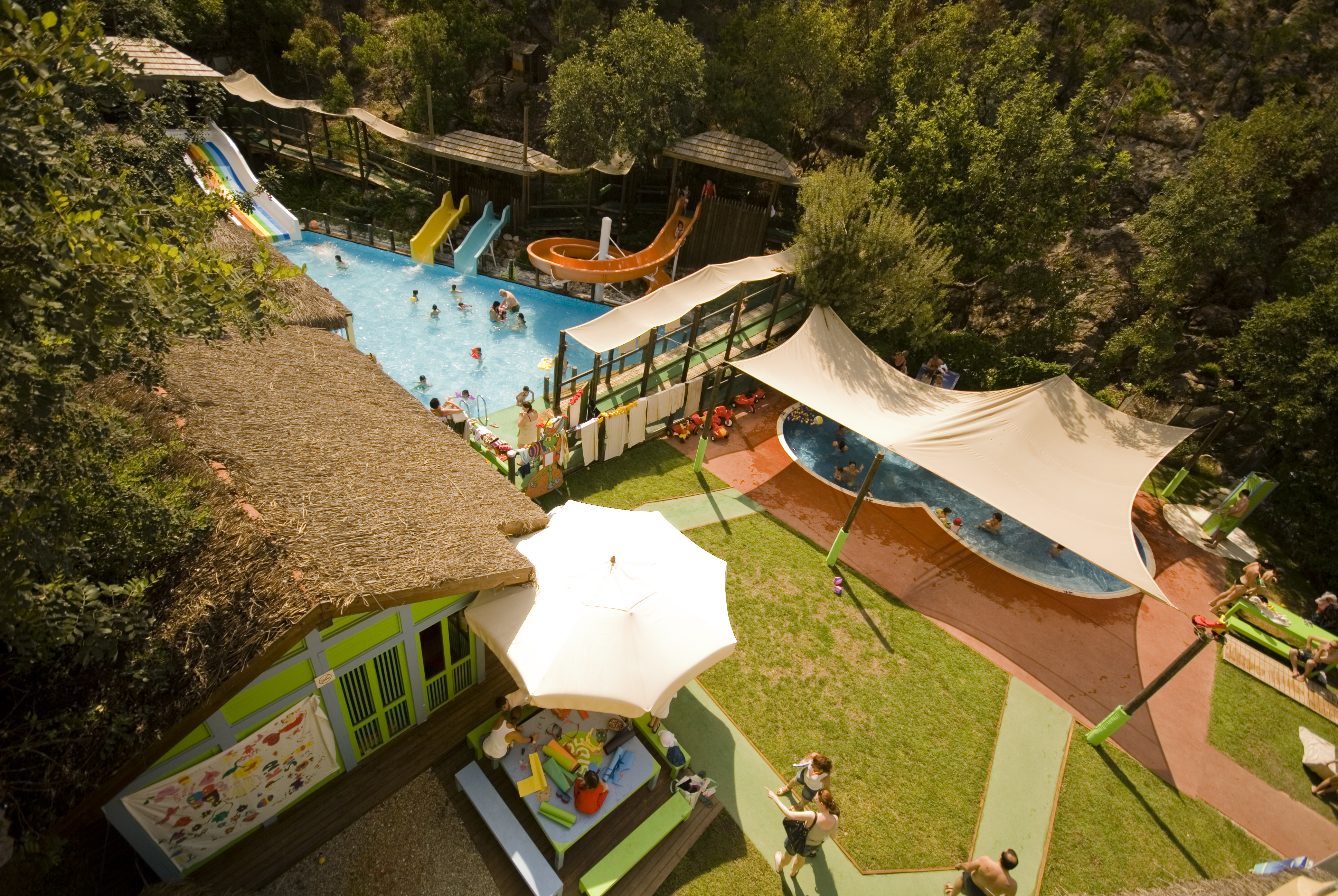 Pool with 4 water slides, Pool, Sandpit, Private lockers, Craft tables, Playgrounds, Mini disco, Professional entertainment coaches for children