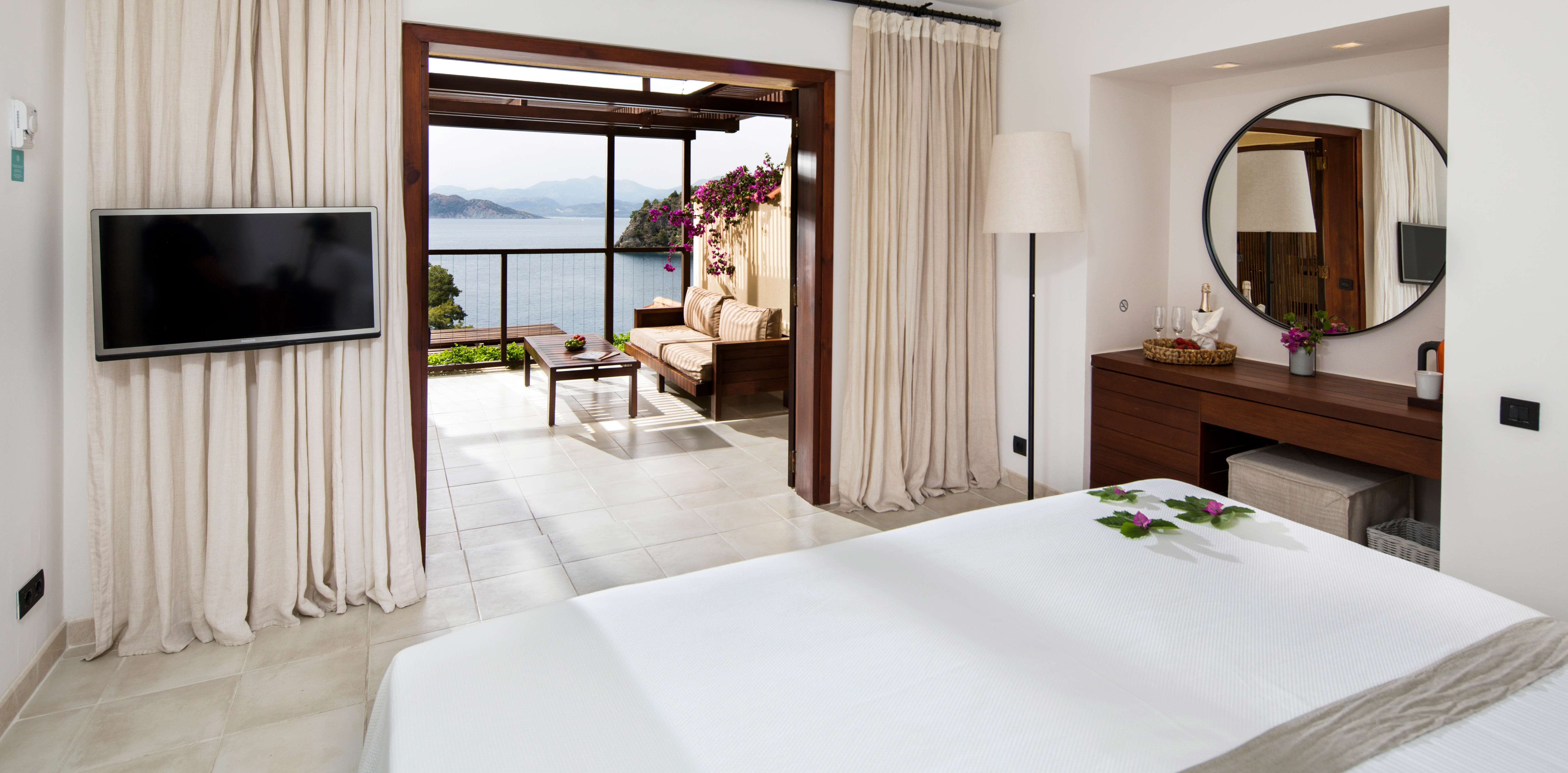 Terrace (in Type A and B rooms – with a sea view), Walk-in closet (in Type A and B rooms), Walk-in shower, Free Wireless Gigabit Internet, Coffee & Tea facilities, Baby cot (on request), Electronic safety deposit box, Central Air Conditioner, Mini bar (charged extra), Hair dryer, Flat panel IP TV / HD Channels / Movies on demand (free), Telephone, Pillow menu, Black-out curtains, Electronic smoke detector.