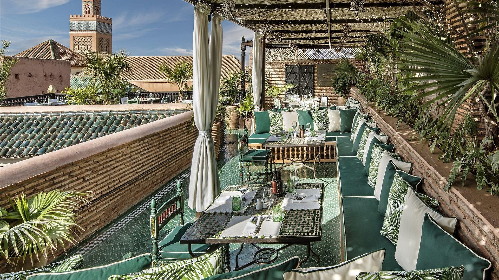 La Sultana’s rooftop terrace is the largest in the medina. It’s an elegant space with green cushions and traditional Moroccan tiling inspired by the hanging gardens of Babylon with panoramic views of Marrakech and the Atlas Mountains. The acclaimed bar and restaurant (The Odette Bar & La Table du Souk} on the roof terrace serve signature cocktails and mouth-watering local dishes throughout the day. The roof terrace hosts daily cooking classes. La Sultana Marrakech celebrates Morocco’s culinary heritage and outstanding local produce sourcing ingredients from a small network of local producers and La Sultana’s very own organic gardens and the local market.