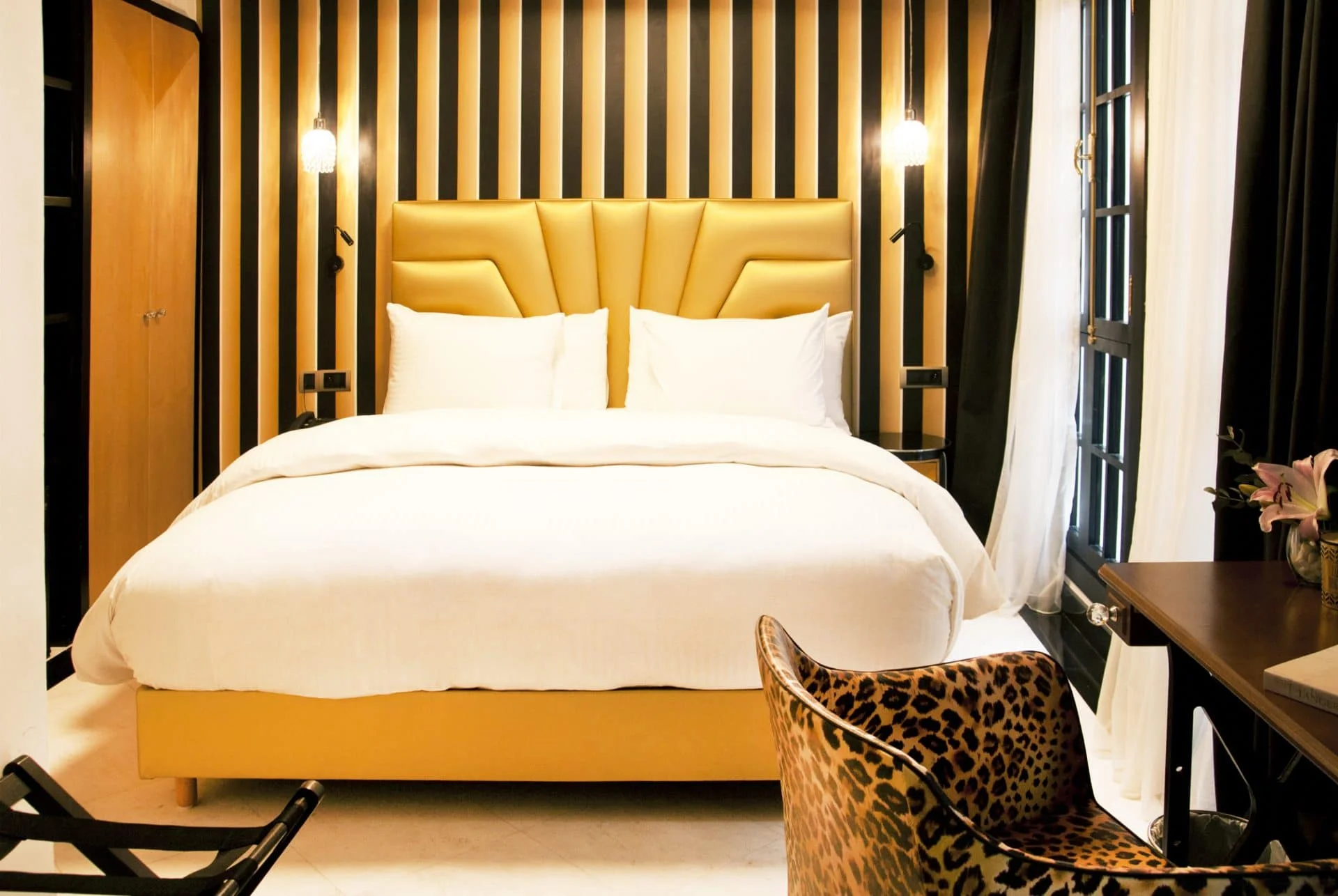 Rooms are filled with extra soulful touches through the aesthetics of the furniture, the symbolism of the objects and accessories, the materials and the hues. Along with a certain “je ne sais quoi” which defines the spaces and suits the figures after which the rooms are named: Malcolm Forbes, Barbara Hutton, Elizabeth Taylor, Mick Jagger, Antoni Gaudí, Ibn Battûta.