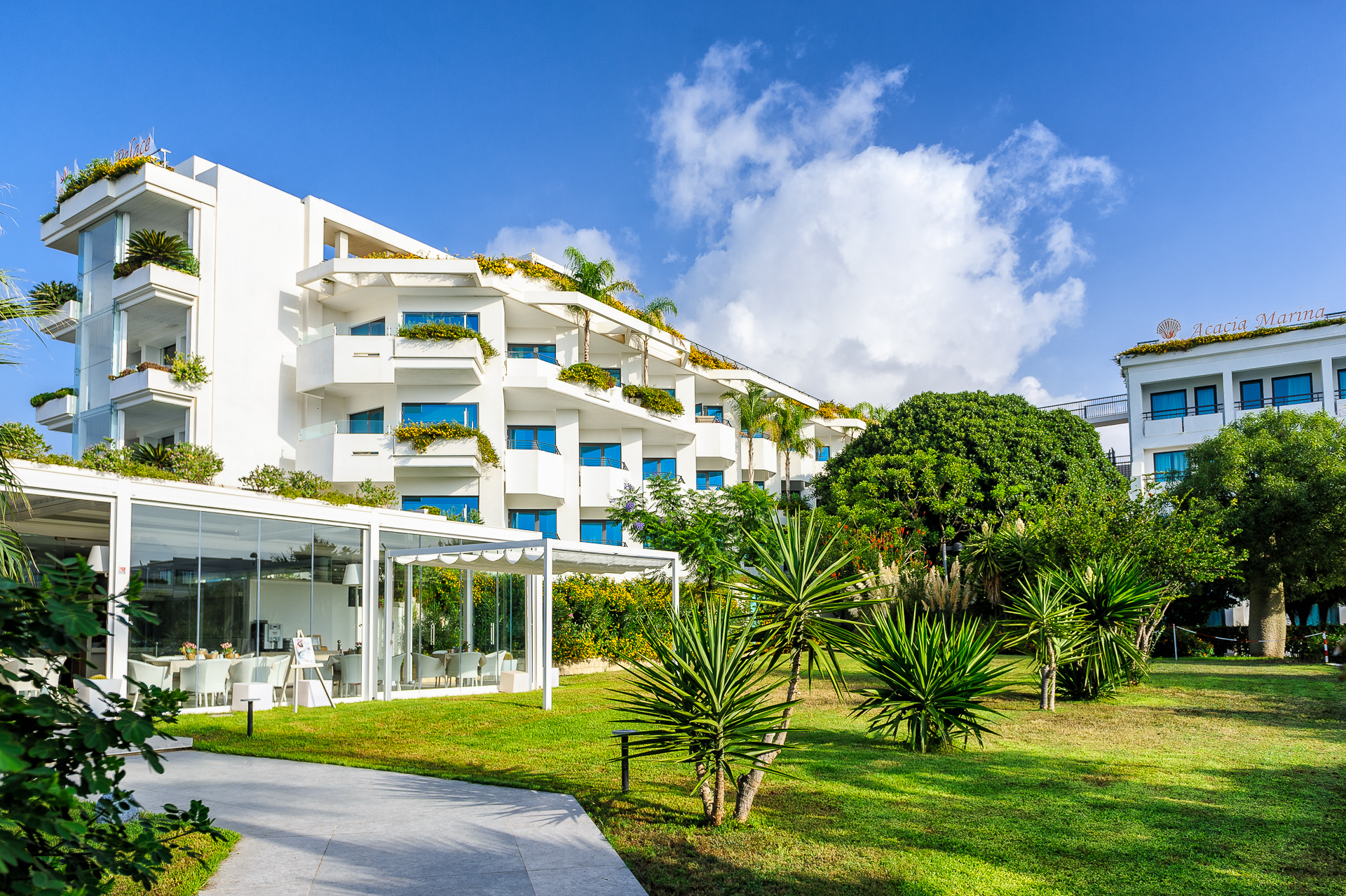 In a quieter area of Marina di Ragusa but still just 100m from the beautiful blue flag beach (with a private section for hotel guests) lapped by crystal clear waters, the adult only Acacia Palace Hotel is a great choice for a relaxing holiday to this stunning part of Sicily.