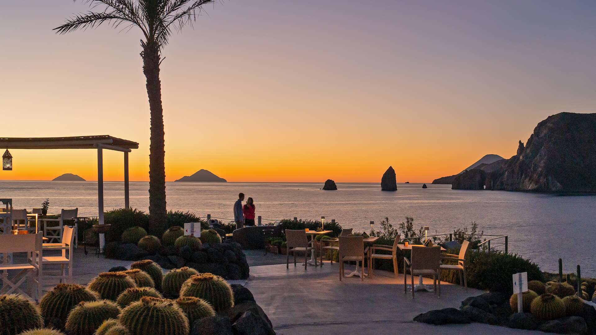 The sunset that sets the air ablaze, the Aeolian Islands with soft outlines standing out on the horizon and Vulcano, an island with a wild charm. The Therasia Resort Sea & Spa, nestled on the promontory of Vulcanello, dominates this breathtaking view.