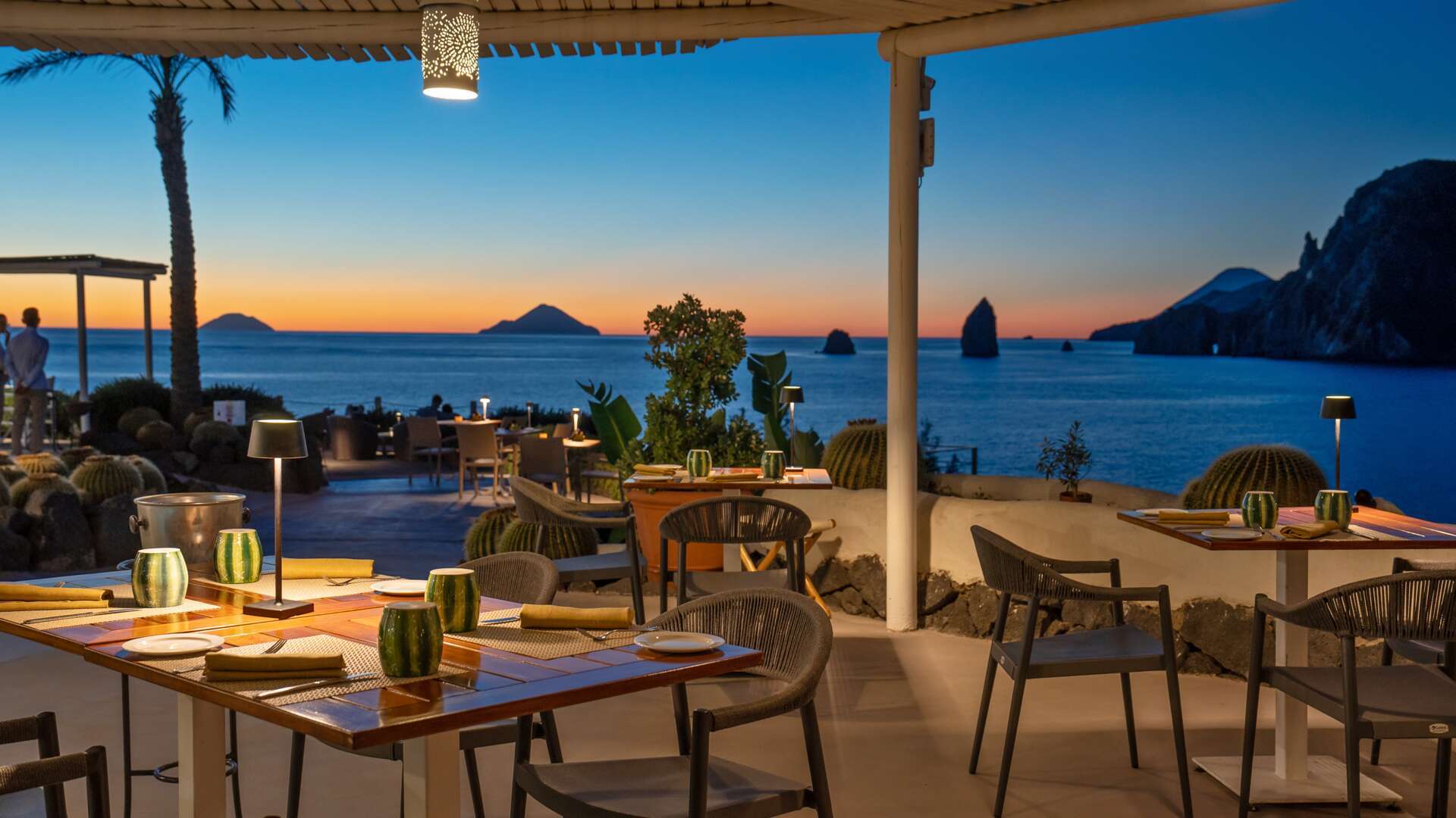 The Therasia Resort offers a real journey into Mediterranean culinary traditions, the perfect contamination of Sicilian flavours and creativity, local aromas, and culture featuring no less than four restaurants including a Michelin starred (1 red Michelin star and 1 green Michelin star), and the first Vegetarian in the Aeolian Islands. Sicilian cuisine is reinterpreted with imagination, to offer guests innovative, light and genuine dishes in order to have an unforgettable experience.