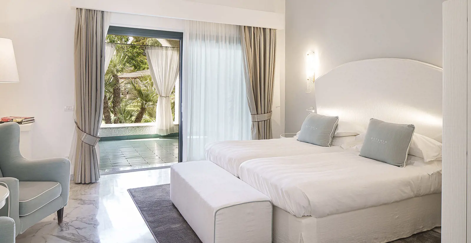 Botania Relais & Spa has 50 bedrooms and suites spread across 9 villas in the mature gardens of the resort. In fine weather, an extensive breakfast buffet is served on the terrace overlooking the gardens. Breakfast can also be served via room service.