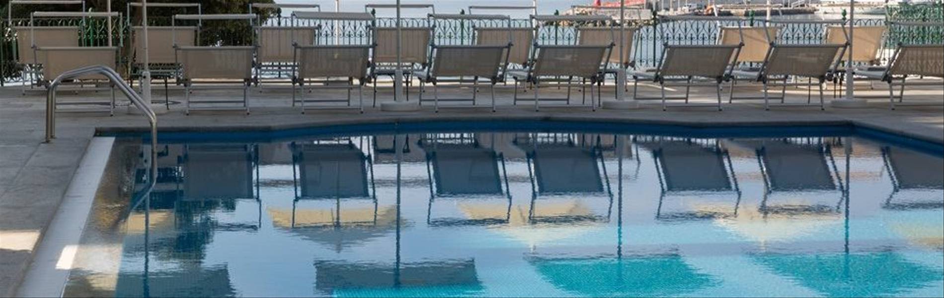 Additionally, a warm seawater swimming pool, harmoniously integrated with the lush historical park, offers comfortable sunbeds for leisurely sunbathing. For those who prefer staying poolside, an upper terrace features a spacious outdoor pool with a stunning sea view.