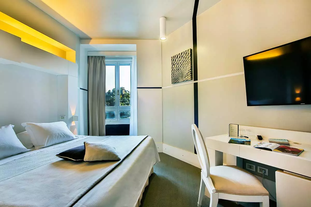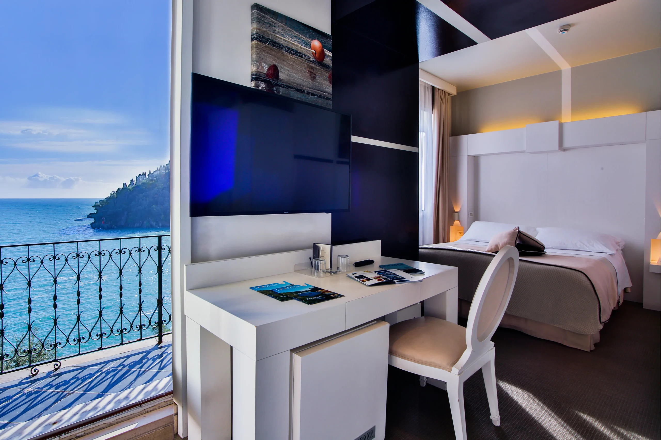 The hotel boasts 23 uniquely designed rooms that reflect a serene and welcoming environment. Here, modern comforts harmonize with soft pastel tones, pristine white bedding, and plush pillows. Flowing curtains frame views of the stunning surrounding landscape, emphasizing the natural beauty of Portofino. Most rooms overlook the enchanting Tigullio Gulf, equipped with all essential amenities.