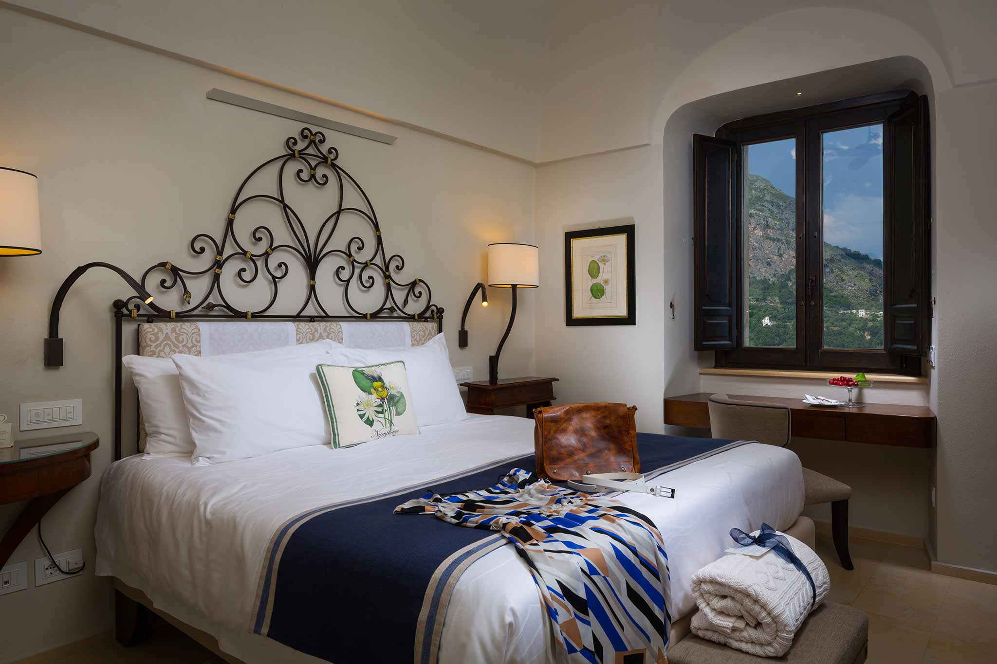 The story of the Monastero begins with the gentle rhythm of monastic life—nuns cloaked in black and white wool, baking cream-filled pastries in a kitchen that seemed to float between sky and sea. Today, the monastery has been transformed into an intimate luxury hotel, preserving the heart of its origins while embracing modern comforts. Comprising only 20 rooms and suites spread over two spacious levels, the former living quarters of the nuns now offer refined privacy and discreet elegance. Each room is imbued with spiritual charm and is named after an herb or plant once cultivated by the nuns in the monastery’s garden. The view from every suite is nothing short of enchanting, stretching from the harbour of Conca dei Marini to Amalfi and beyond.
