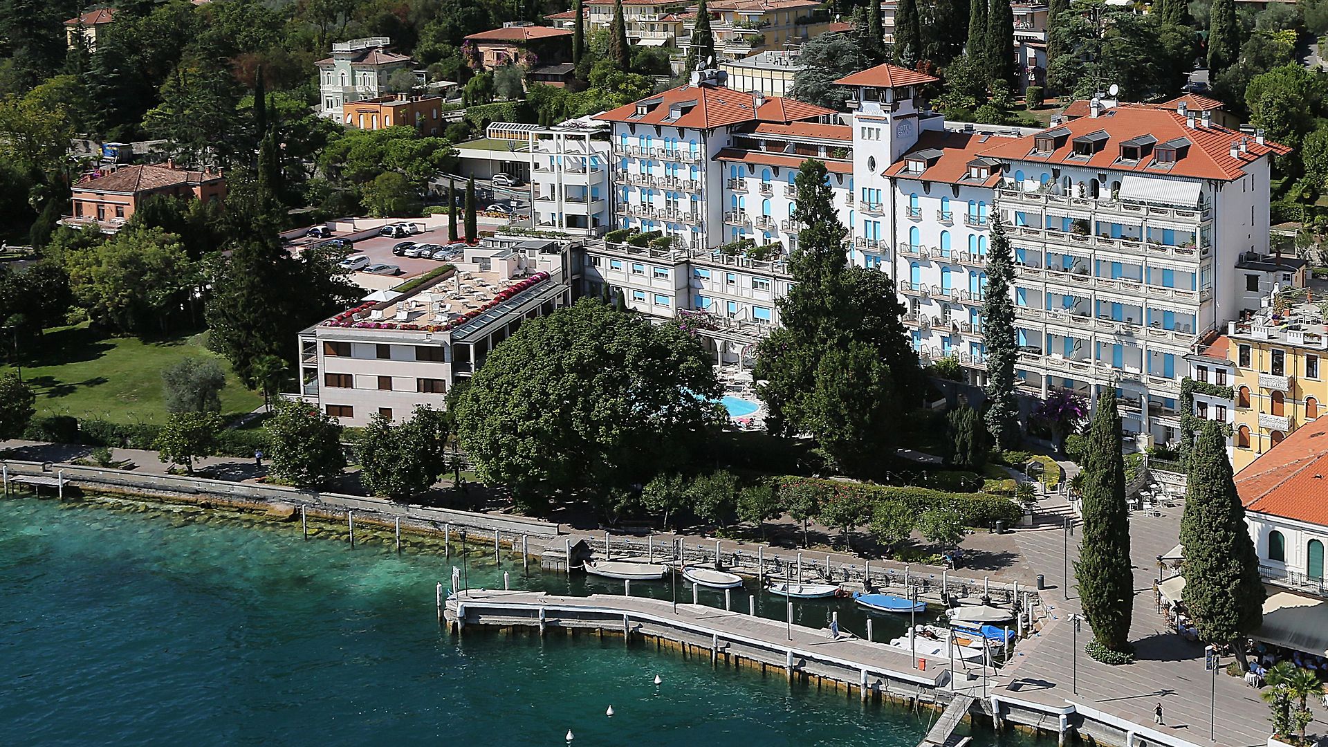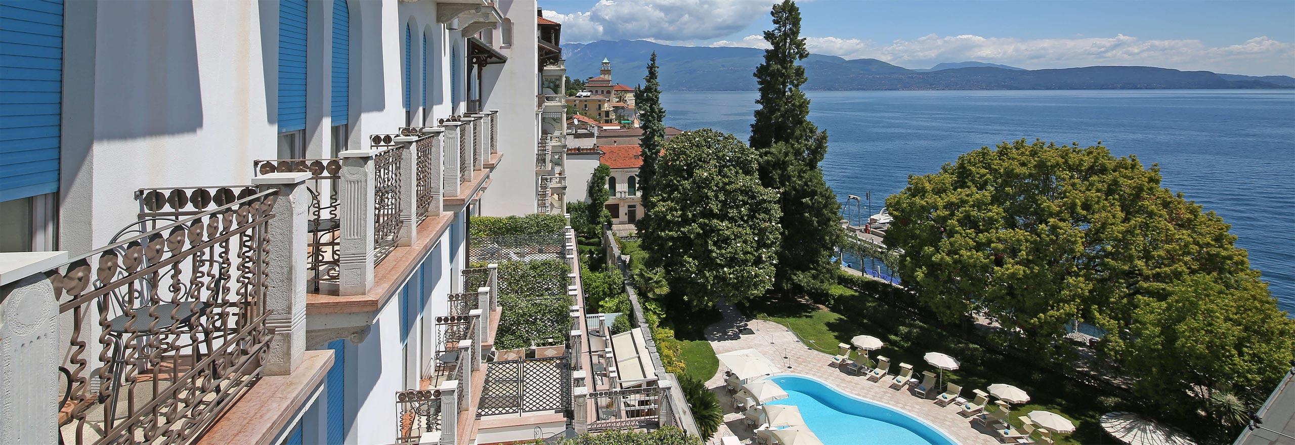 Set on the western shore of Lake Garda, the Hotel Savoy Palace in Gardone Riviera offers a prime lakeside location with breathtaking views. This Belle Époque-style hotel has long been admired for its elegance, with comfortable rooms, a beautiful garden, and a serene pool area overlooking the lake. The hotel is an ideal choice for couples and friends seeking a peaceful getaway in one of Lake Garda’s most historic locations.