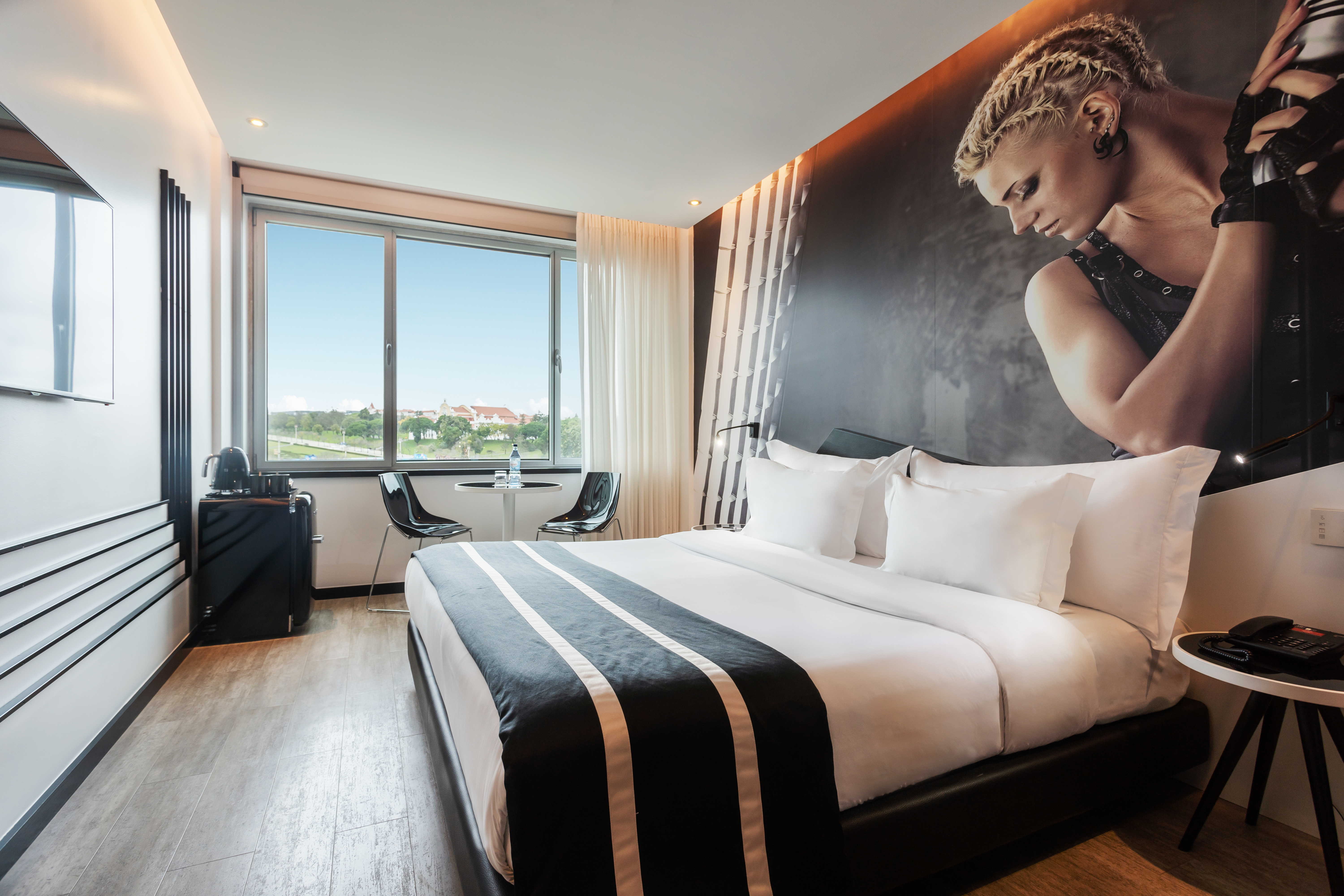 HF Fénix Music is a vibrant and contemporary hotel located in the heart of Lisbon, on Praça Marquês de Pombal. Designed as a tribute to music, every detail of the guest experience is influenced by sound and rhythm, from the themed décor to the curated playlists that flow throughout the building, created by a local DJ and available on Spotify. The hotel’s rooftop pool and Onair Lounge Bar offer sweeping views of the city skyline, including Parque Eduardo VII, the Castle of São Jorge, and the Tagus River—making it an ideal place to relax with a drink and take in the sights.