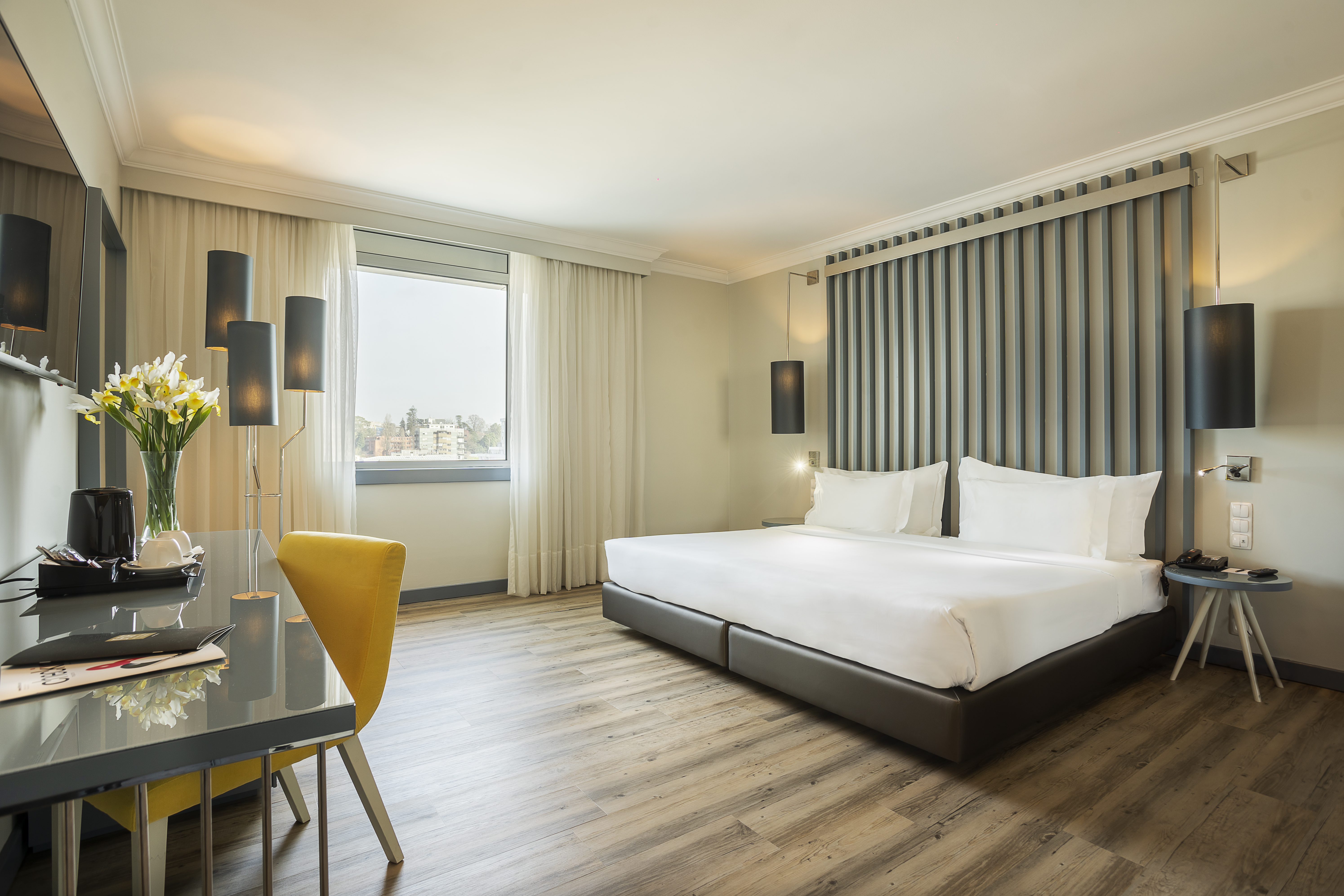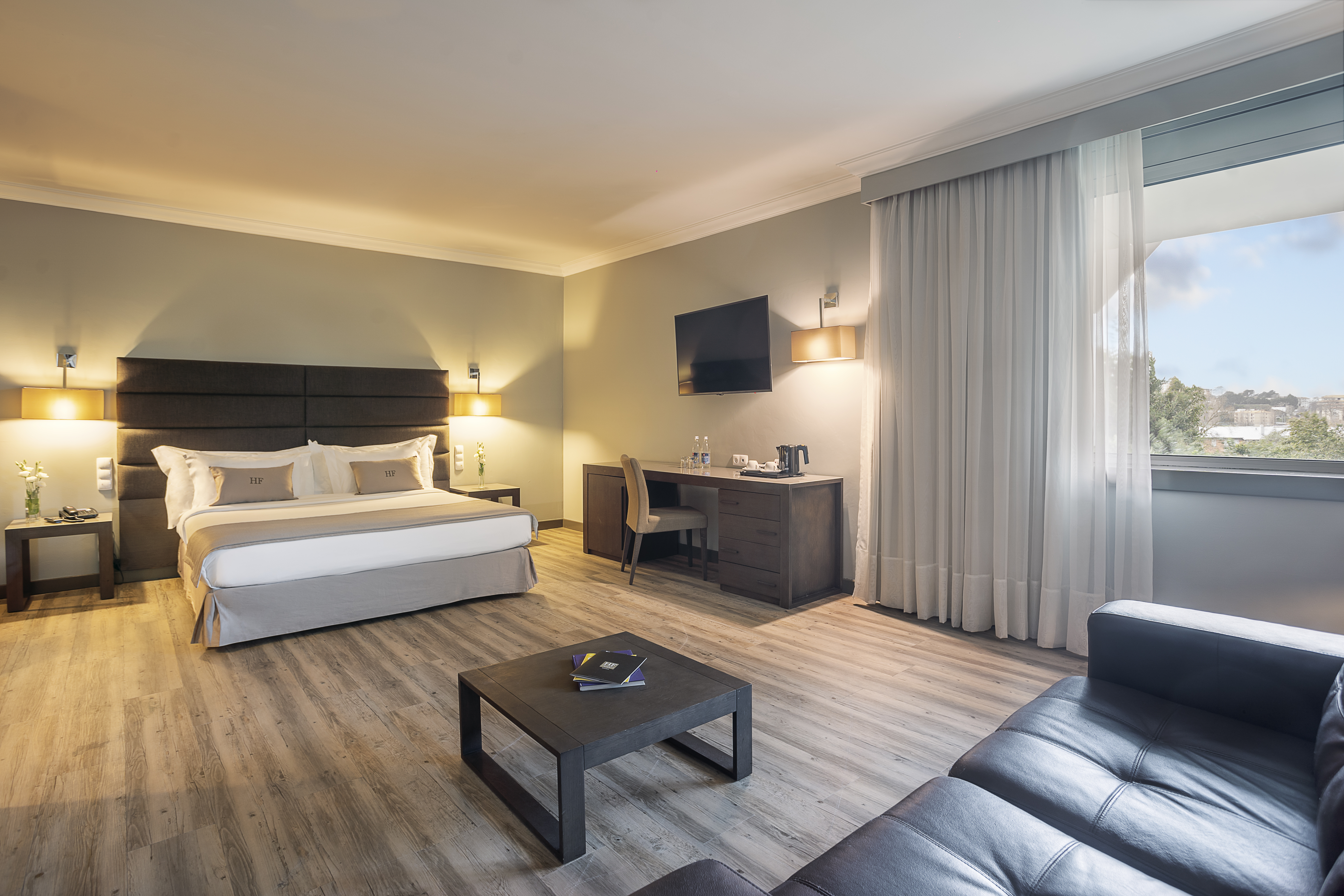 The hotel offers a wide range of spacious and well-appointed rooms and suites, all equipped with air conditioning, free Wi-Fi, cable channels including Sport TV, minibars, and 24-hour room service. Higher-floor rooms boast exceptional views over the city. Guests can start the day with a generous breakfast and dine at the on-site Jardim d’Inverno Restaurant or enjoy lighter bites at the Twin Trees snack bar, with a strong emphasis on Portuguese flavours.