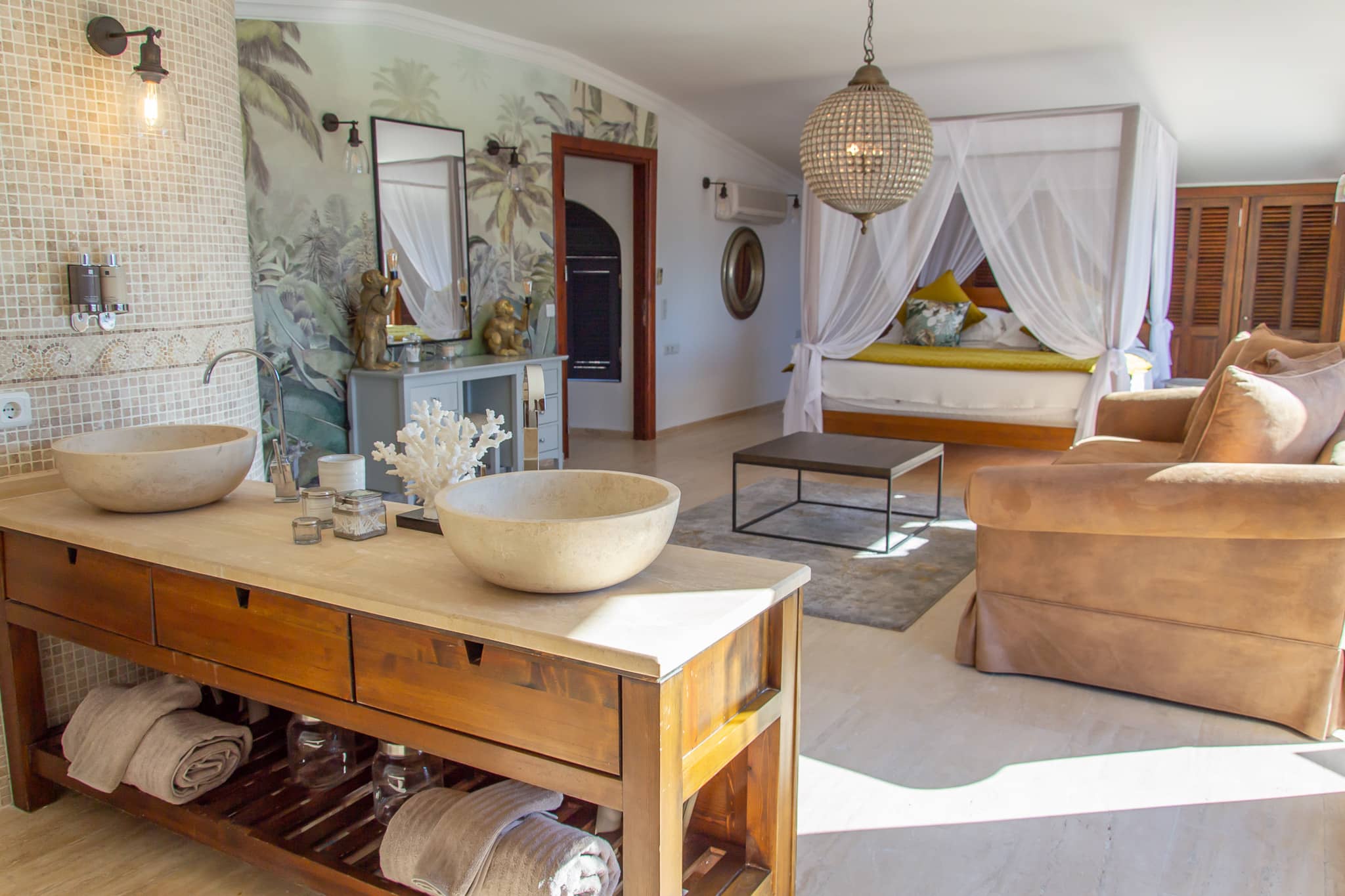 Villa Alexander's crowning glory is a vast top floor master suite with open plan marble bathroom and walk in shower.