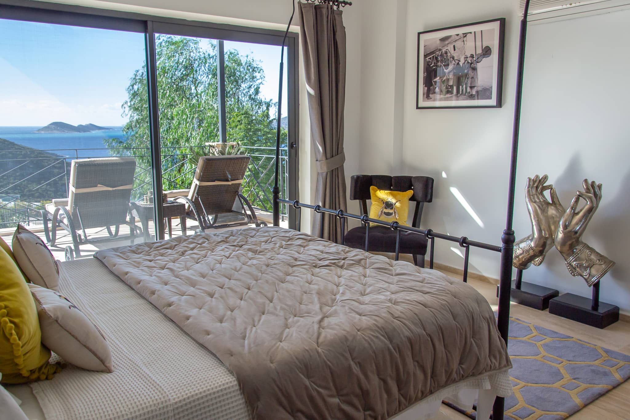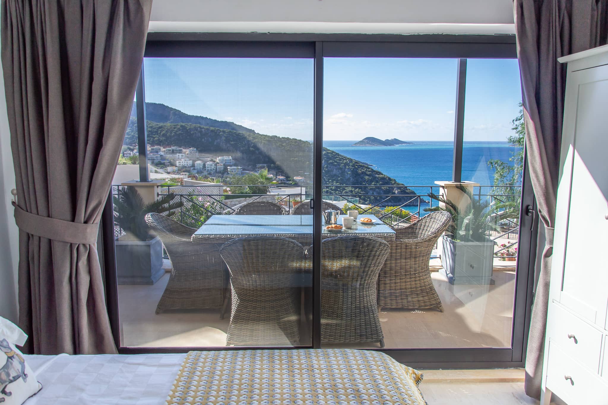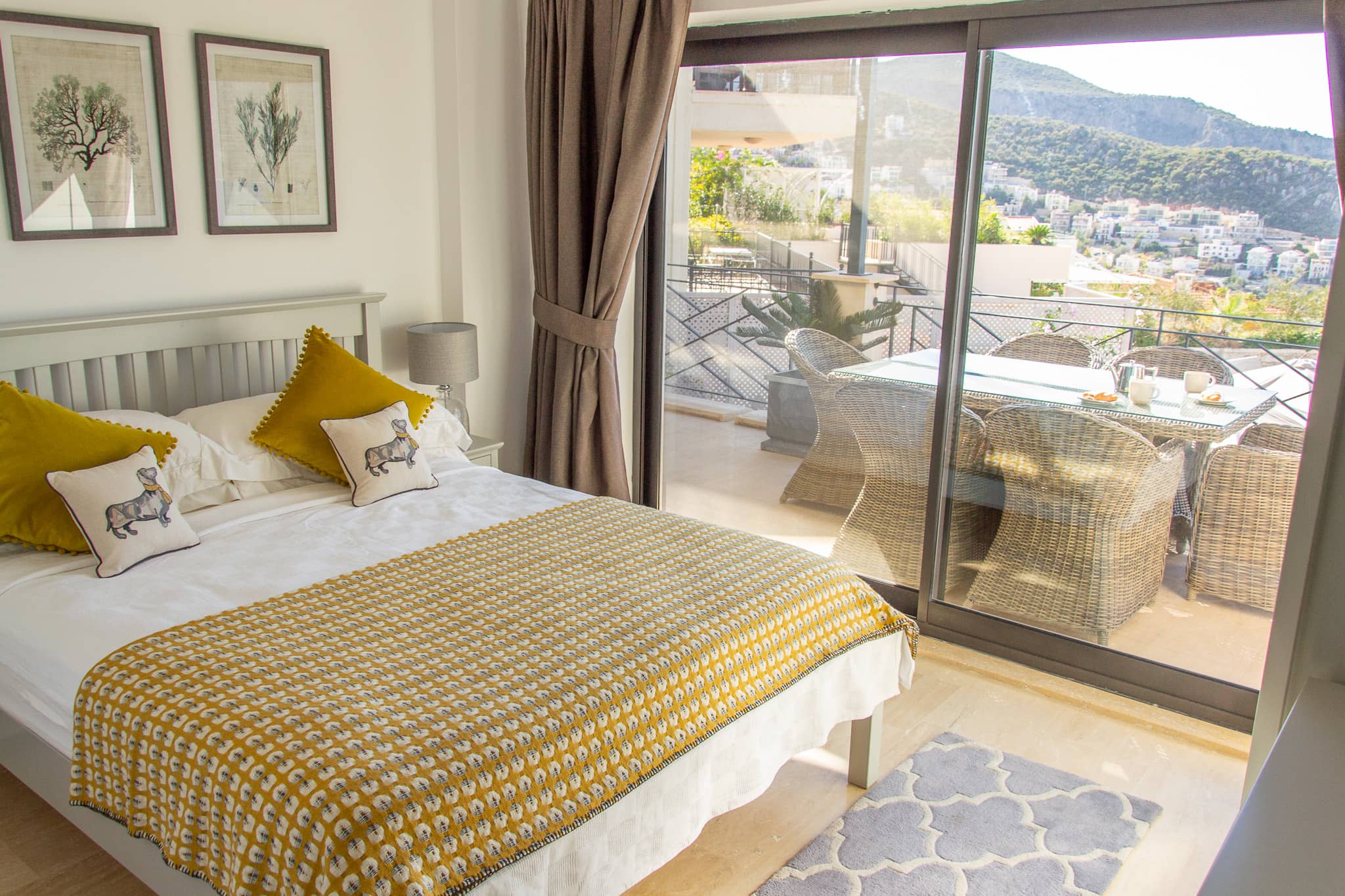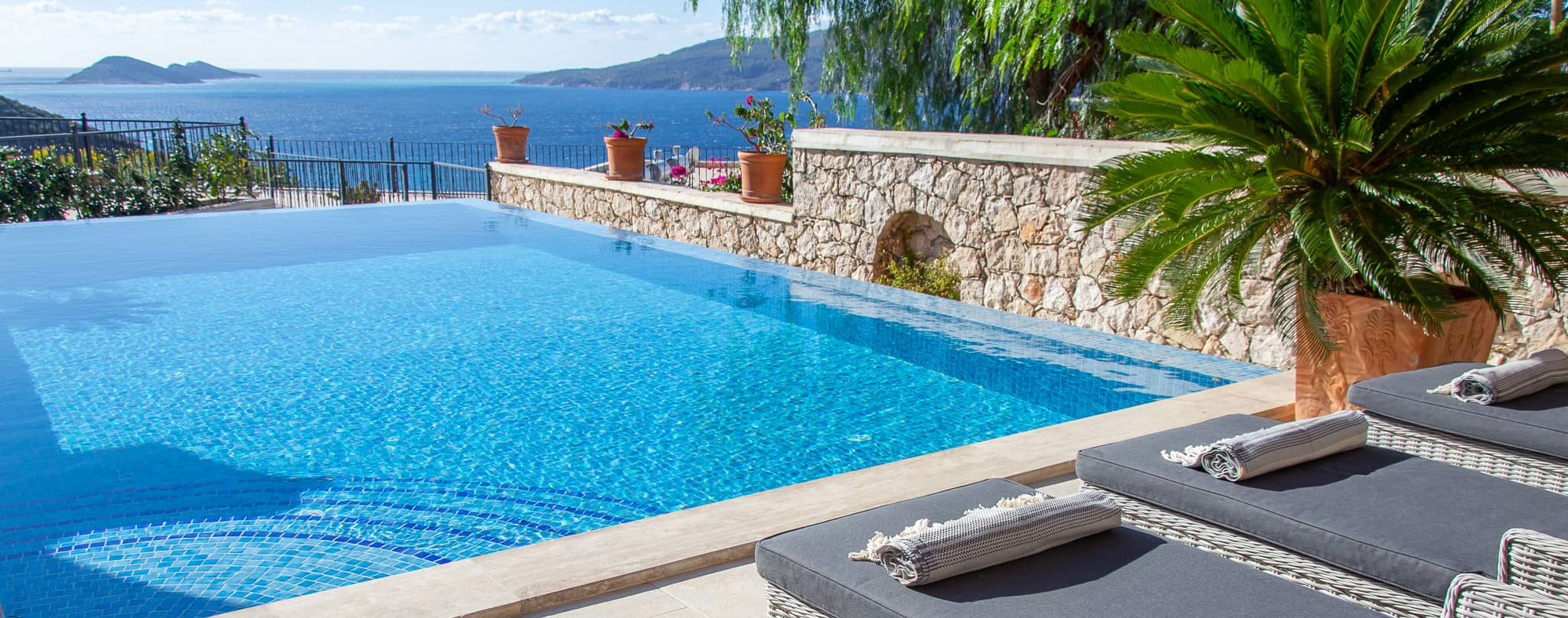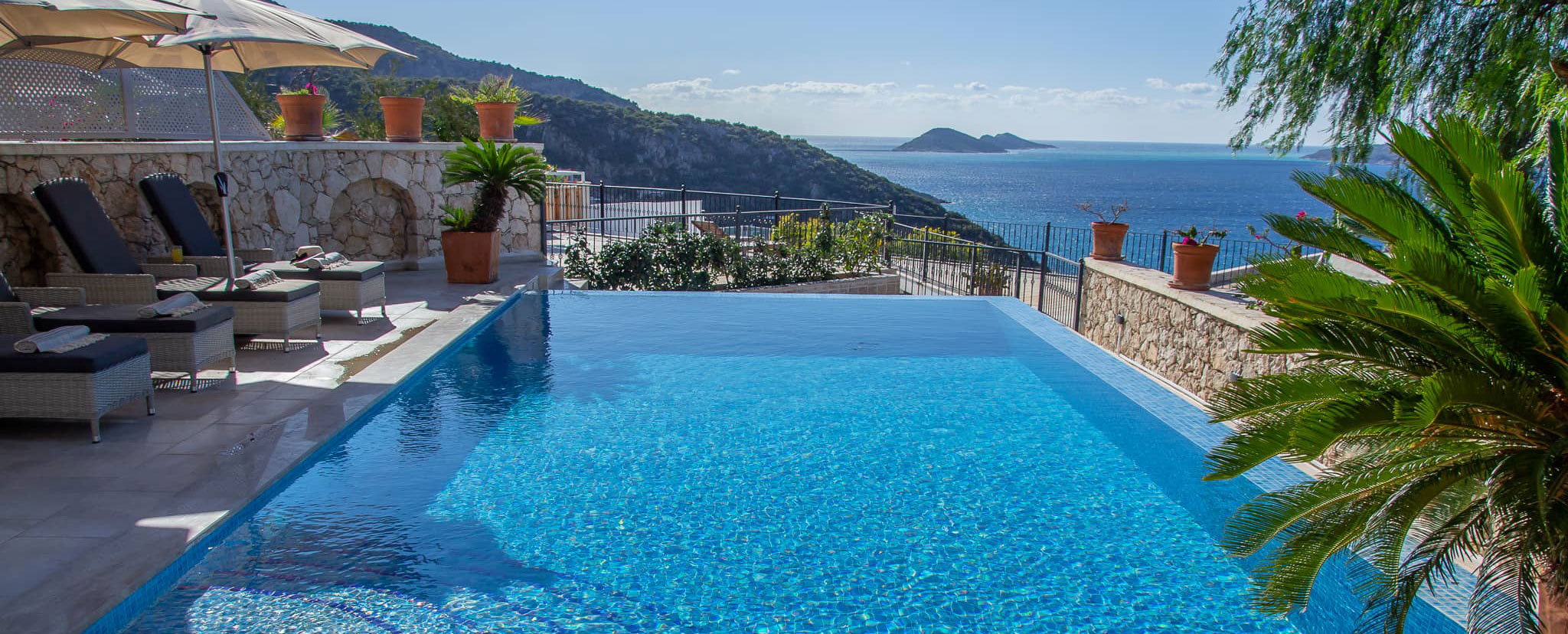 We are delighted to offer this luxury Kalkan villa. Villa Alexander's crowning glory is a vast top floor master suite with open plan bathroom and walk in shower. The bedrooms have large balcony space with sofas and sun loungers and stunning views of Kalkan bay and her islands. The outside area features a large infinity swimming pool for you to cool off in and numerous seating areas with chic contemporary sofas. Renovations have taken place over the winter and Villa Alexander now has a games room with a seven foot pool table, a Foosball table and a large wall mounted flatscreen TV along with X-Box controllers