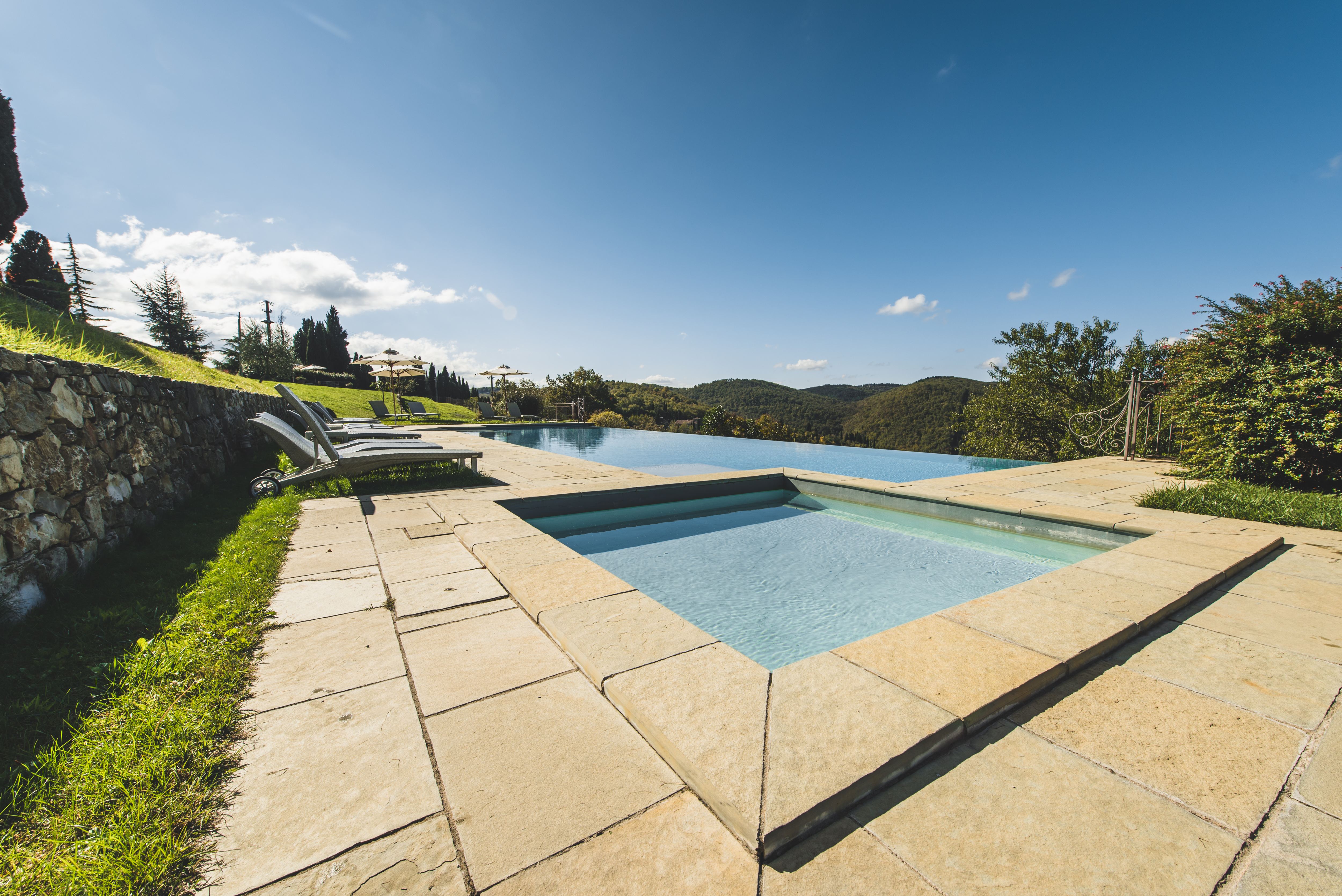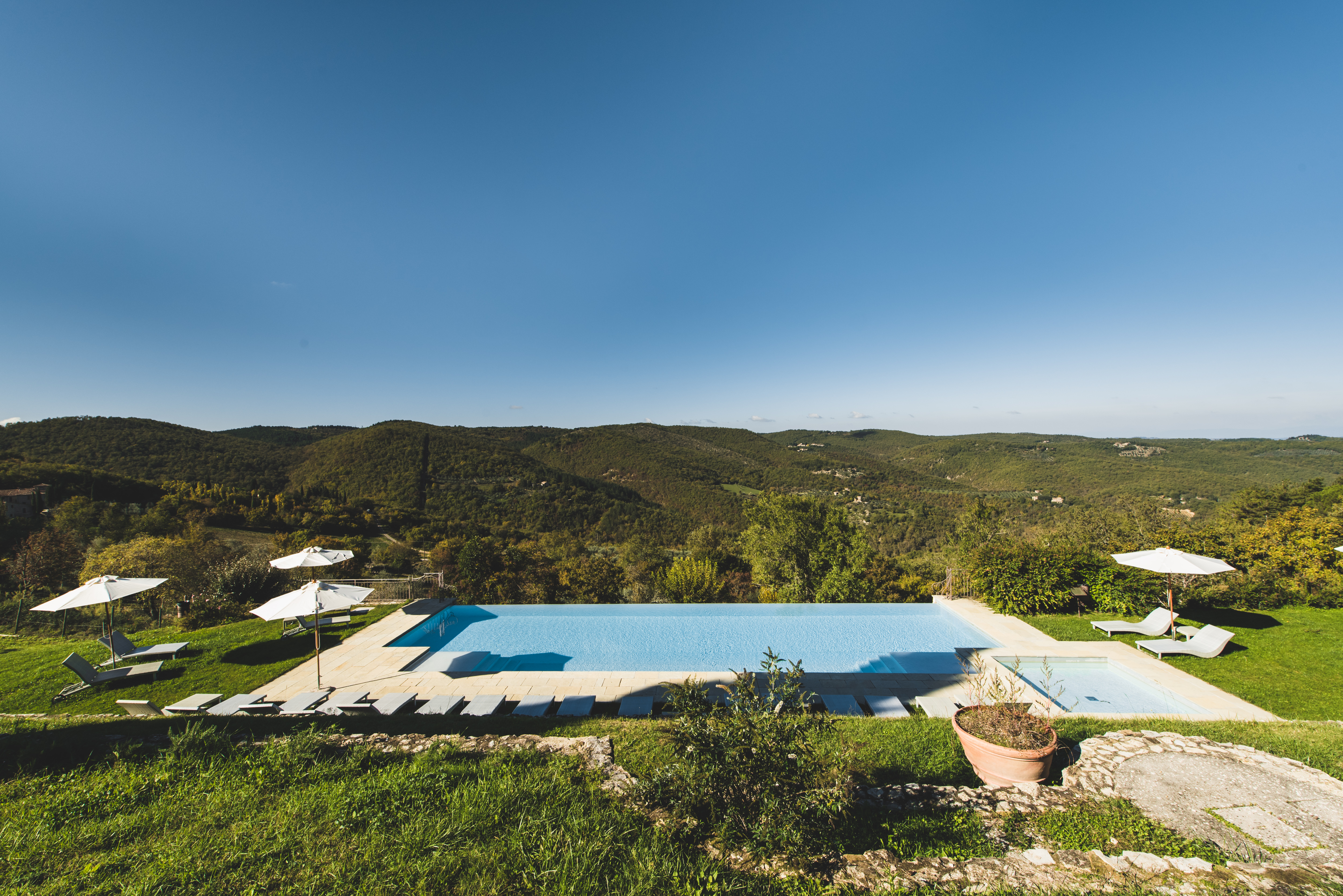 14 X 7m Infinity pool with Chianti vineyard views. Sun beds and sun umbrellas provided. Pool open 01 May to 30 October - weather permitting.
